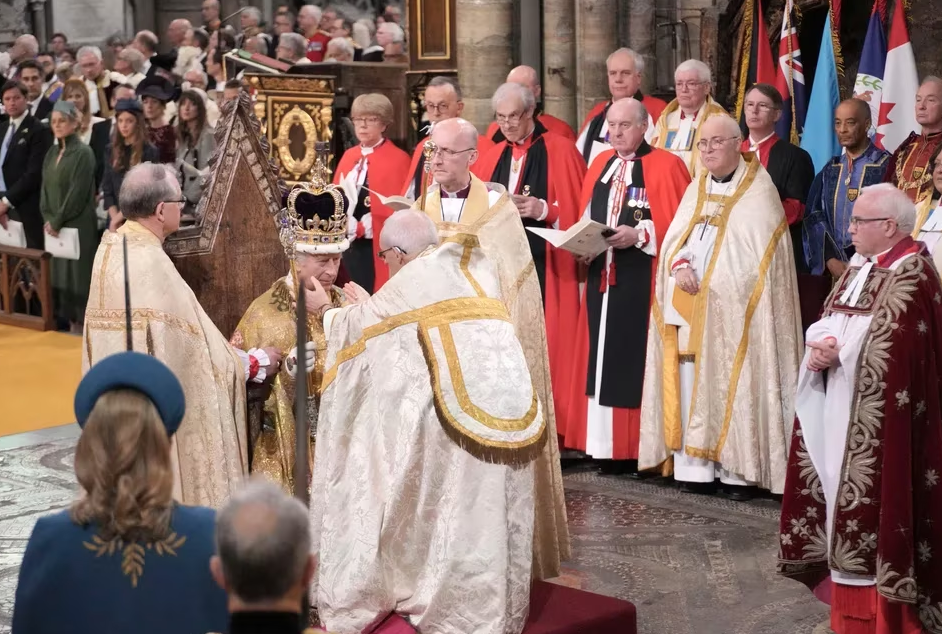 Durante la ceremonia, la multitud reunida en la Abadía de Westminster se unió en un coro de "Dios Salve al Rey" mientras el príncipe Carlos era coronado.