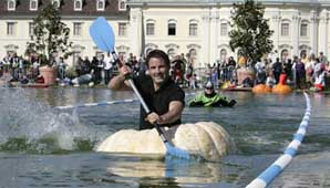Uno de los eventos más esperados del Festival es la carrera de botes hechos de calabaza. Calabazas gigantes, algunas de más de 90 kg, son ahuecadas y lanzadas al Lago de Ludwigsburg, y los concursantes tienen que llegar hasta la línea de meta, rodeados de los aplausos de los espectadores. No estoy seguro de cual sea el premio por ganar una carrera tan extraña, pero seguro que es algo relacionado con calabazas.