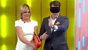 Buenos Aires, 12 de mayo.- Sarah Harris, presentadora de Studio 10, colaboraba con un truco de magia cuando agarró una pistola de clavos de manera equivocada y casi termina apretando el gatillo.