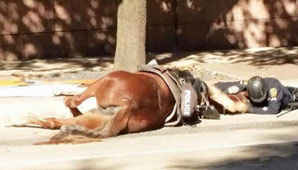 El hecho tuvo lugar el 3 de diciembre a las 10.15 en la céntrica avenida Fannin at Congress de Houston, cuando Charlotte, una yegua de 6 años de edad, se cruzó de carril sobresaltada por el ruido del tránsito y fue embestida por un camión que circulaba en su misma dirección y que no se detuvo tras el accidente.
