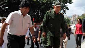 Sobre su colega de Bolivia, Chávez aseguró que "va de paso" a Cuba antes de viajar a Nueva York, donde asistirá a la Asamblea General de las Naciones Unidas, en la que Venezuela estará representada por su canciller, Nicolás Maduro.