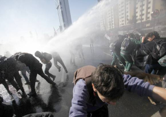 Fueron 5 horas de protesta. Pero la tensión se elevó cuando los estudiantes ocuparon la calzada y entorpecieron el tráfico, pero, fue en el momento en que éstos trataron de avanzar hacia la Alameda cuando Carabineros (policía militarizada) comenzó a dispersarlos.