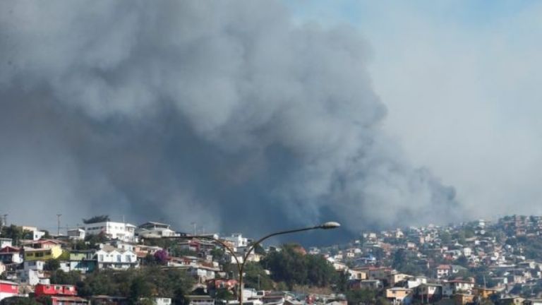 Al menos 120 casas en las afueras de la ciudad chilena de Valparaíso se vieron afectadas por un voraz incendio forestal.