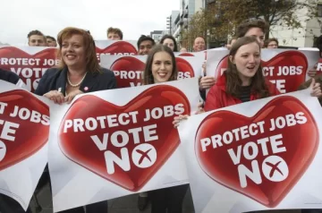 Salmond presentó la opción de la independencia como un proceso no traumático que traerá beneficios tangibles, como que los escoceses podrán decidir y gestionar cuestiones básicas como un salario mínimo actualizado al costo de vida. El líder nacionalista promete que Escocia seguirá en la Unión Europea (UE), en la libra esterlina y mantendrá la Corona de Isabel II.