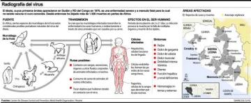 La cartera sanitaria advirtió que si bien el movimiento de personas entre Argentina y los países donde se documentó la transmisión de la enfermedad no es frecuente, “la potencial vía de introducción del virus del ébola en el territorio argentino es el ingreso de viajeros afectados desde zonas con transmisión activa”. Fuentes: Agencias