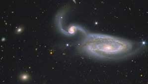 Se trata de una galaxia en espiral grande y otra también espiral más pequeña, con el centro muy brillante con dos brazos intenos y dos abiertos largos y simétricos. Nunca se habían visto con tanta precisión, pero si se conocían y se sabe que han colisionado.