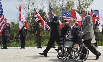 "En una hora de máximo peligro y en medio de las circunstancias más terribles, hombres que se creían normales y corrientes descubrieron que podrían hacer lo extraordinario", destacó Obama, al rendir homenaje a los veteranos que combatieron, metro a metro, para escalar los acantilados de la costa normanda y garantizar una cabeza de playa desde la que se lanzaría la liberación de Francia.
