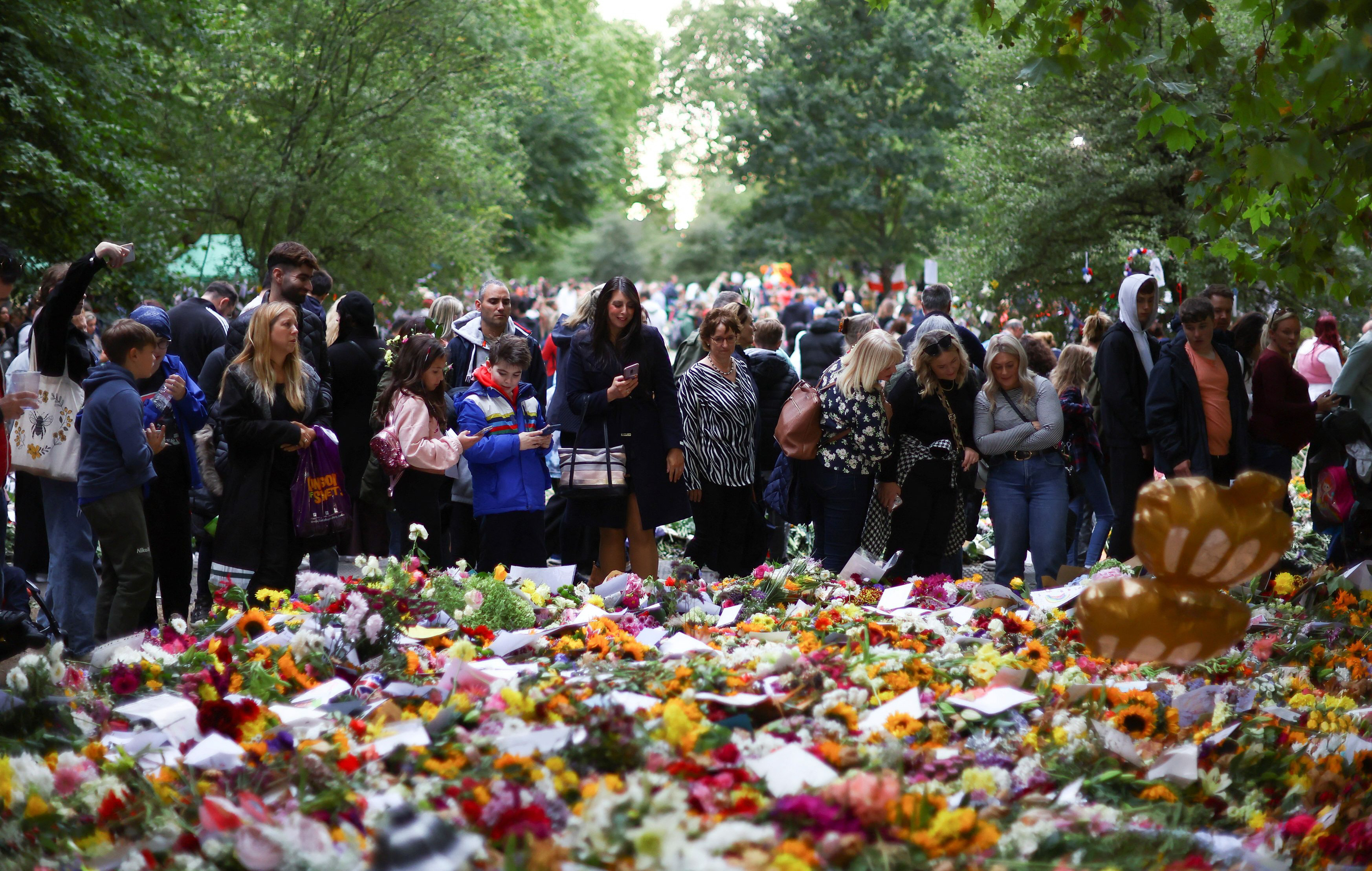 Miles de personas continuaban haciendo fila durante todo el día para pasar frente al féretro de la reina en el edificio del Parlamento, desafiando muy bajas temperaturas.