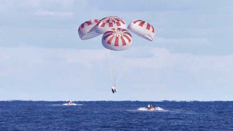 La cápsula Dragon de SpaceX amerizó en el Golfo de México hoy después de volver a entrar en la atmósfera de la Tierra y desplegar sus paracaídas sin ningún problema. El piloto Doug Hurley, uno de los dos astronautas a bordo, dijo: “Es verdaderamente nuestro honor y privilegio”. Mientras las comunicaciones de radio se cortaban, se escuchó el festejo de los empleados de la NASA durante la transmisión oficial.