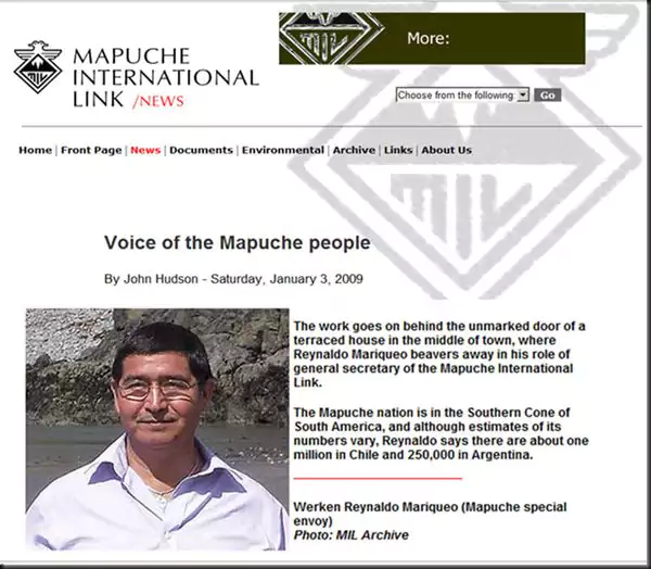 Mientras en el sur de nuestro continente, grupos mapuches, como la agrupación Resistencia Ancestral Mapuche (RAM) o la Coordinadora Arauco Malleco (CAM), le declaran la "guerra a Argentina y Chile", y protagonizan actos de sabotaje, incendios y amenazas, la MIL explica –en inglés– que "the Mapuche Nation está situada en lo que se conoce como el Cono Sur de Sudamérica, en el área actualmente ocupada (sic) por los Estados argentino y chileno".