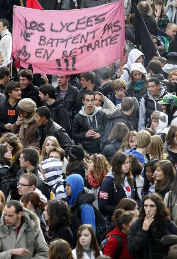 Los estudiantes, que temen que las reformas empeoren el desempleo juvenil por mantener a trabajadores mayores durante más tiempo en sus puestos, salieron a las calles del centro de París. Cientos de escuelas secundarias y más de 30 universidades fueron afectadas por las movilizaciones.
