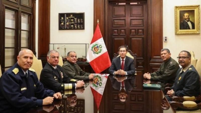 Tras el anuncio, los responsables de las Fuerzas Armadas y la Policía Nacional se reunieron con Vizcarra para mostrar "su pleno respaldo al orden constitucional y al presidente".