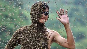 Wang Dalin, de 42 años, ganó la competencia luego de soportar 26 kg de abejas en 60 minutos. Wang solamente vestía unos pantalones cortos y usó a varias abejas reinas para atraer a otras abejas a su cuerpo. Con miles de abejas sobre su cuerpo, se pesó en una báscula durante el concurso de apicultores.