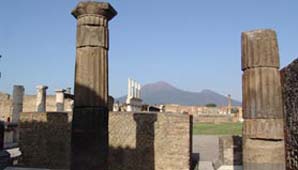 Pompeya, situada junto a la ciudad de Nápoles, fue destruida en el año 79 a.C. por una erupción del volcán del monte Vesuvio que mató a miles de personas y enterró la ciudad seis metros bajo la ceniza volcánica.