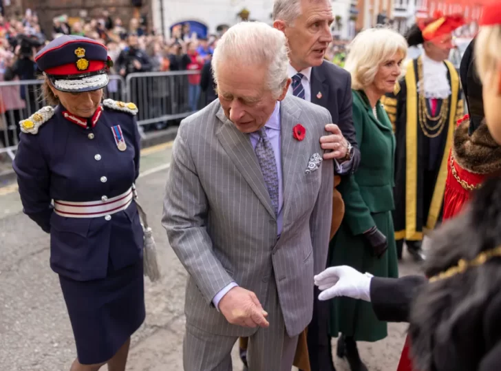 Según las imágenes difundidas por las televisiones británicas, el rey no pareció inmutarse por el incidente mientras estrechaba las manos de las personas congregadas en una calle de York.