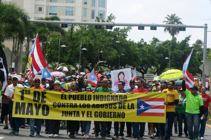 Puerto Rico. Convocada por la Central Puertorriqueña de Trabajadores, se hizo una marcha en San Juan contra los recortes de beneficios laborales.