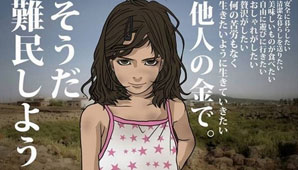 Según el diario Japan Times, la ilustración está basada en un caso real de una nena desnutrida forzada a huir de su país devastado por la guerra.