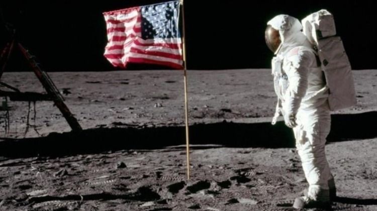Buzz Aldrin, el segundo hombre en pisar la Luna, plantó la bandera de Estados Unidos el 20 de julio de 1969. Luego él contaría que vio que el emblema cayó por la fuerza de los propulsores del módulo lunar. Se cree que se desintegró debido a las condiciones extremas de la Luna.