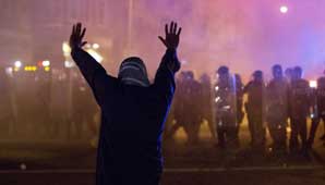 Tras el comienzo de la primera noche bajo toque de queda algunos grupos de manifestantes, principalmente jóvenes negros, se podían ver en las calles y la policía lanzó bombas de humo y gas pimienta para dispersarlos.