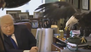 El precandidato presidencial Donald Trump se preparaba para una sesión de fotos con la revista Time. Trump posaría con el ave nacional de Estados Unidos, el águila calva, pero grande fue su sorpresa al ser atacado por el majestuoso animal.