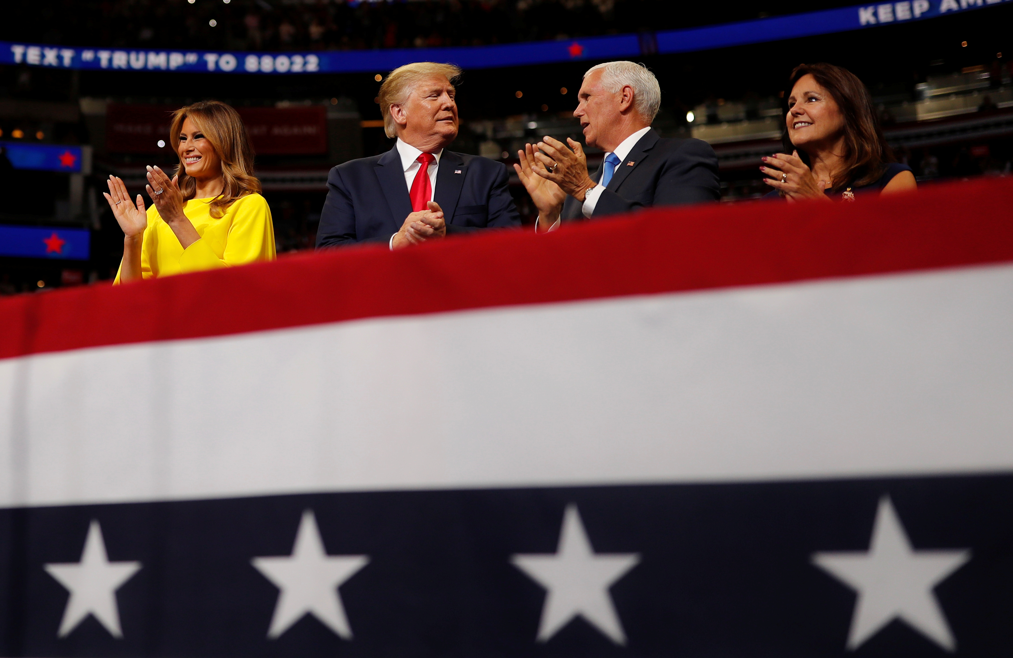 El vicepresidente, Mike Pence, había sido el último en animar a la multitud que esperaba a Trump: "Necesitamos cuatro años más en la Casa Blanca", dijo. "Cuatro años más significan más empleo, más jueces, más apoyo para nuestros soldados. Y hacen falta al menos otros cuatro años para terminar de limpiar este pantano", en alusión a la política en la capital del país.