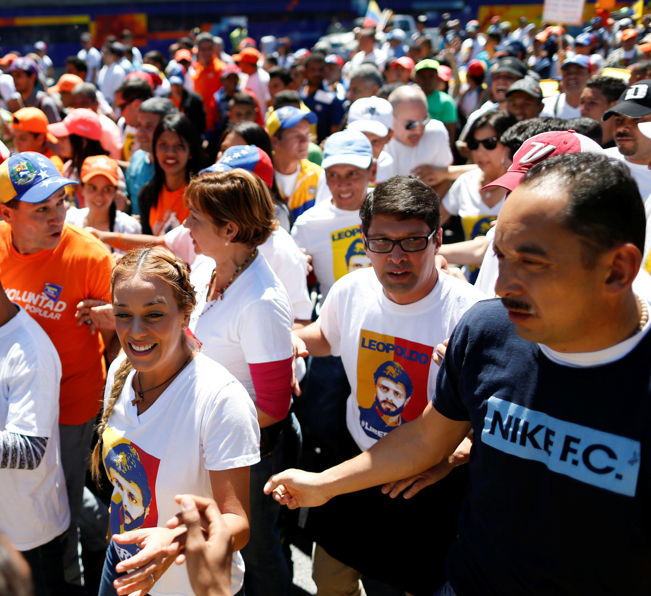 Dos marchas, una organizada por el partido liderado por López, Voluntad Popular (VP), y otra encabezada por el Comité de Víctimas de las Guarimbas (barricadas) y el Golpe Continuado, afecto al gobierno de Nicolás Maduro, se desarrollaron en el este y el oeste de Caracas, respectivamente. Ninguna de las dos movilizaciones contó con una gran asistencia aunque sí quedaron bien expresados sus objetivos: el de VP de pedir la libertad de López, y el del Comité, exigir que se aumente la condena al dirigente.