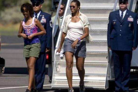 Michelle fue fotografiada al descender del Air Force One luego de pasar unos días de descanso en el oeste estadounidense con su esposo y sus dos hijas, Malia, de 11 años y Sasha, de ocho. Sus cortos shorts que dejaban ver sus largas piernas, causó un revuelo que no se hizo esperar. En la pagina web HuffingtonPost.com el medio se pregunta: "¿Se imaginan a Laura Bush o a Patricia Nixon en shorts?". Y agrega: "Sin duda, Michelle tiene hermosas piernas, pero, ¿es apropiado que en su papel (de primera dama) las deje ver tanto?" Las opciones para responder son: "Absolutamente, es muy moderna"; "de ninguna manera, ya que no es apropiado para una primera dama"; "no es el fin del mundo, pero quizás no debería volver a vestir así una próxima vez".