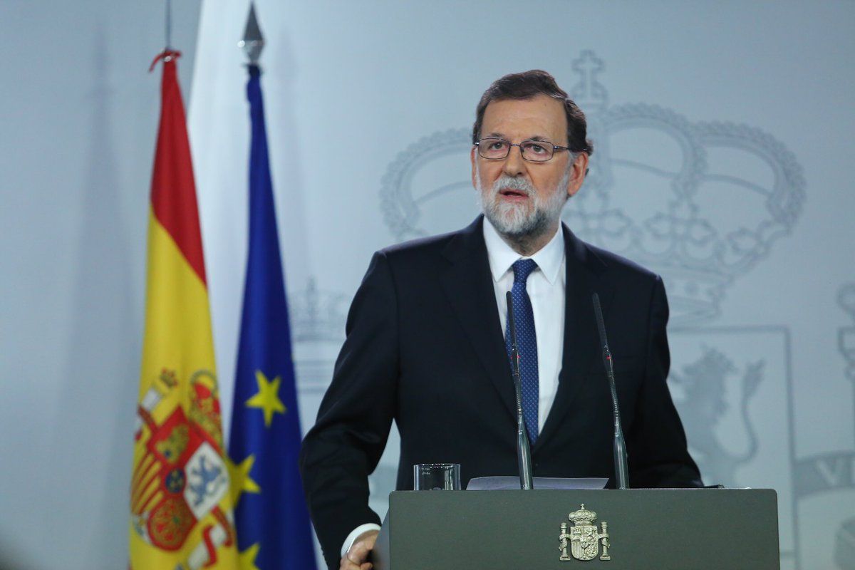 "La facultad de disolver el parlamento de Cataluña pasa al presidente del gobierno, que tendrá un plazo de seis meses para convocar elecciones", afirmó Rajoy en conferencia de prensa desde el Palacio de La Moncloa, tras el consejo de ministro extraordinario en el que se concretaron las medidas para intervenir en la norteña región al amparo del artículo 155 de la Constitución española.