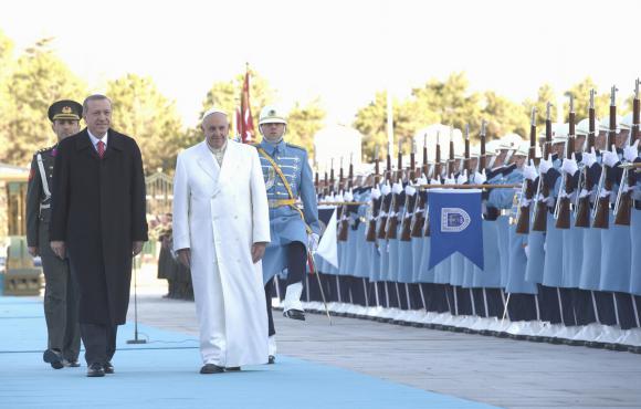La visita de tres días de Francisco estará centrada en el diálogo entre las iglesias católica y ortodoxa y el acercamiento a los musulmanes. La visita papal motivó un impresionante operativo de seguridad: nadie que lleve un bolso o paquete podrá acercarse al pontífice o transitar por las calles marcadas como recorrido del Papa. Francisco volará hoy a Estambul, donde visitará la catedral católica del Espíritu Santo, donde celebrará una misa, para encontrarse en privado con el patriarca Bartolomé I, quien lo invitó al país.