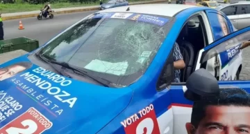 Las imágenes que circulan en redes sociales muestran el parabrisas del vehículo destruido por las balas y vidrios rotos esparcidos en el suelo.