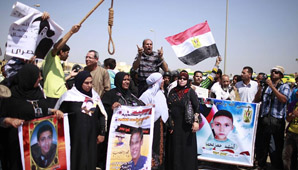 "No queremos problemas. Tenemos que protestar en la plaza y hacer oír nuestra voz por esta sentencia injusta e ilegítima", dijo a la agencia EFE Mohamed Alaa Mahfuz, uno de los voluntarios de la cadena humana.