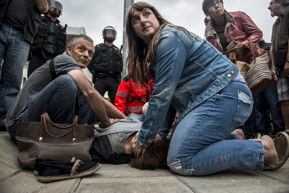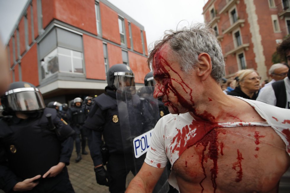 A las 9 en punto de la mañana, hora en la que debía comenzar la votación en el referéndum catalán, los cascos negros de la Guardia Civil avanzaron entre las personas que esperaban la apertura de las mesas en la escuela Infant Jesús de Barcelona, con la intención de prohibir que se lleve adelante la consulta popular que el gobierno nacional considera ilegal. Hubo forcejeos, una señora mayor fue herida en la cabeza y un hombre fue traslado en ambulancia, víctima de un ataque de epilepsia.