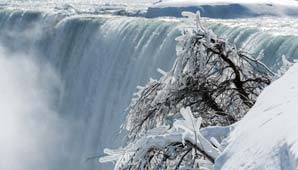 Buenos Aires, 21 de febrero.- Por las bajas temperaturas que llegaron a los -22°C este viernes se congeló la cubierta de las cataratas del Niágara, creando una obra de arte frígido que atrae a turistas.