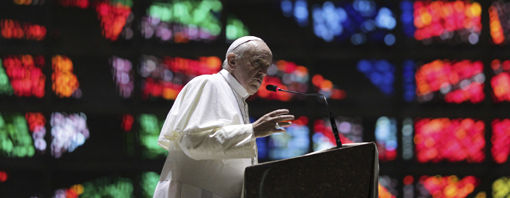 De buen humor, dijo que no le gusta "estar enjaulado" y rezó junto a los jovenes antes de bajar a sacarse fotos y darse abrazo con los que estaban en las primeras filas. Se escucharon canciones argentinas y el nombre de su santidad fue vivado en infinitas ocasiones. Un pedacito de Río se vistió de celeste y blanco.