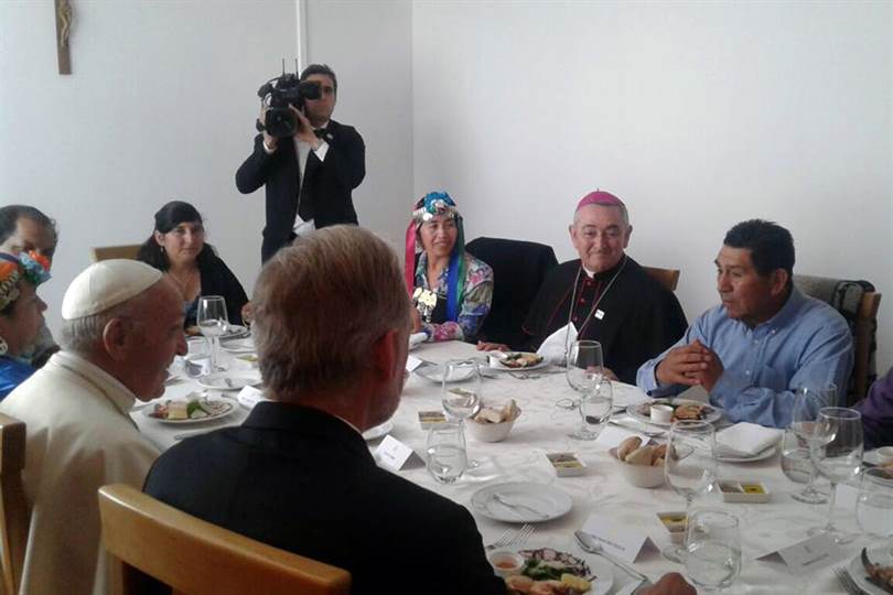 Entre los invitados al almuerzo se encontraba el obispo de esta ciudad, monseñor Héctor Eduardo Vargas Bastidas, y ocho representantes mapuches.