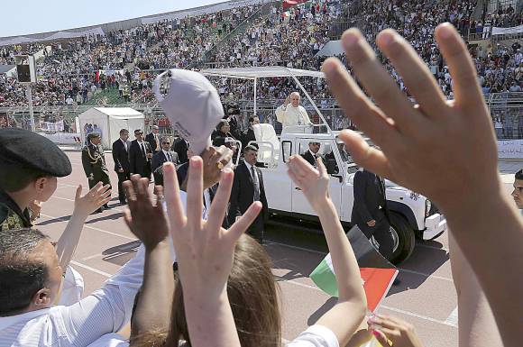 Allí, ante un público entregado que ondeaba cruces, y banderas de Jordania y el Vaticano, Francisco subrayó que ‘la paz no se puede comprar, no se vende‘, es ‘un don‘ que debemos ‘construir mediante gestos grandes y pequeños en nuestra vida cotidiana‘. Flanqueado en el escenario por dos fotografías de grandes dimensiones de dos de sus predecesores, Juan XXIII o Juan Pablo II, el Papa insistió en que ‘el camino de la paz se consolida‘ con el trabajo diario y el respeto al prójimo. (Efe, Télam)