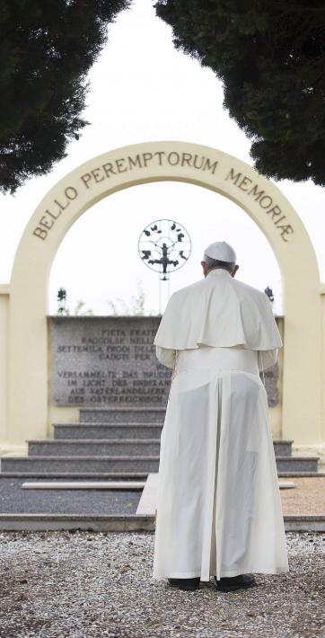 En primer lugar, el Papa rezó en solitario en el cementerio austrohúngaro, donde permanecen sepultados 14.550 soldados. Fue una visita de 5 horas. EFE; Télam