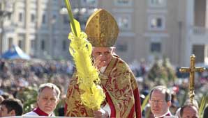 Benedicto XVI se desplazó en "papamóvil" y bendijo las palmas mientras se acercaba al altar, desde el que, tras la procesión, comenzó la solemne misa cuyo Evangelio leyeron tres diáconos. Los mismos leyeron entonando la pasión de Jesús según San Mateo.