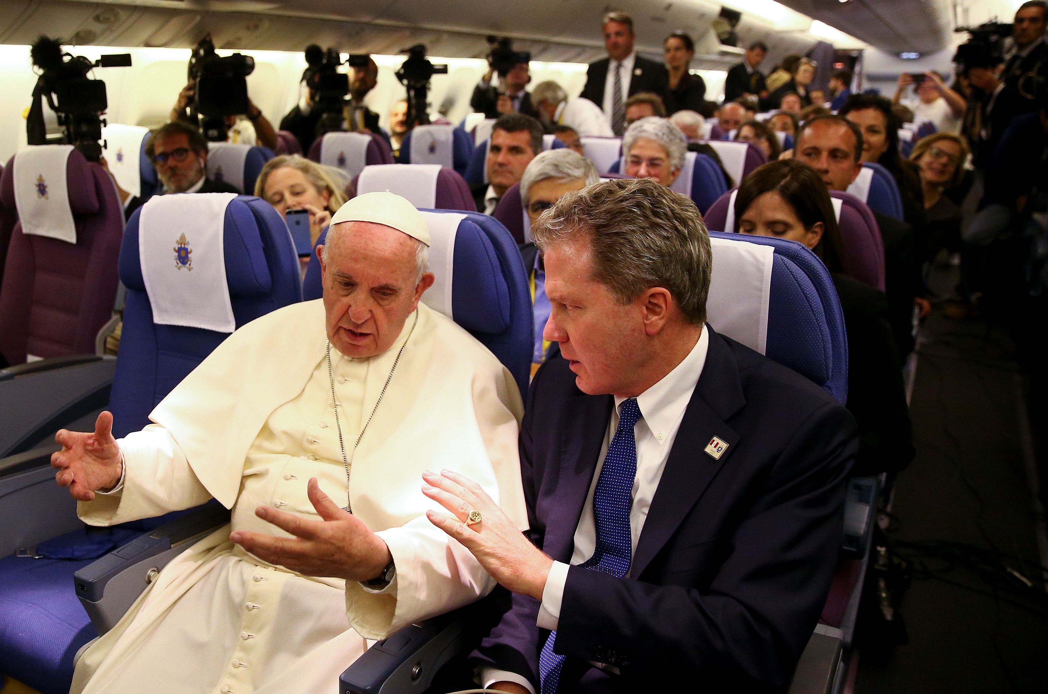 Viaje agitado. La comparecencia de Francisco tuvo que ser interrumpida por las turbulencias del vuelo y obligó al papa a sentarse unos minutos junto a los periodistas. Sólo se permitió preguntas sobre la gira.