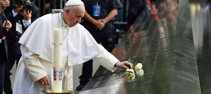 "Aquí el dolor es palpable", añadió el Pontífice, quien dijo que el agua que cae en el monumento creado donde estuvieron las Torres Gemelas "nos recuerda todas esas vidas que se fueron bajo el poder de aquellos que creen que la destrucción es la única forma de solucionar los conflictos".