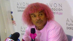 A parte de su talento, su particular peinado lo hizo popular en el mundo del fútbol. Es Carlos El Pibe Valderrama que apareció esta mañana con su legendaria melena pintada de rosado como apoyo a una campaña de la lucha contra el cáncer de seno.
