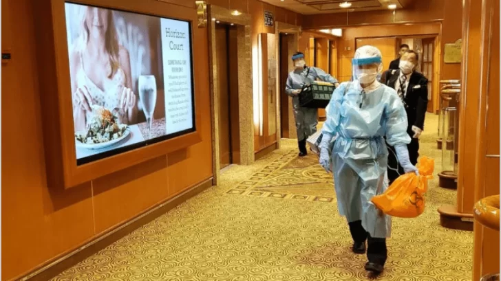 De acuerdo al protocolo que se está aplicando en el buque, los más de tres mil turistas del crucero se encuentran encerrados en sus camarotes -en algunos no hay ventanas-. Para los que no tienen acceso a la luz natural, se los autorizó a caminar por la cubierta en pequeños grupos para tomar aire, pero bajo condiciones estrictas, entre las que se destacan el uso de una mascarilla; que mantengan al menos un metro de distancia cuando conversen, y que se vistan con ropa de abrigo.