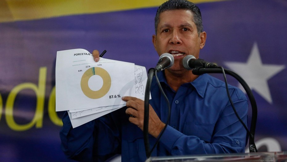 "Este proceso no fue real, no lo reconocemos y exigimos que se convoquen nuevas elecciones", agregó Falcón, el único opositor que no había aceptado unirse a un boicot promovido por gran parte de las fuerzas antichavistas, que acusaban las faltas de garantías en los comicios.