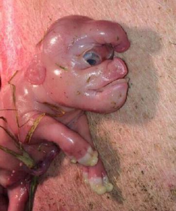 El pequeño animal tenía un rostro humano y una formación extraña que semejaba a un pene en su frente, como puede apreciarse en las fotos."Fue una camada grande, y el mutante fue uno de los últimos de 19 lechones al nacer. Todos los demás eran normales, y sólo éste era realmente extraño", explicó Tao.
