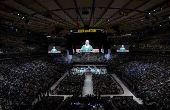 El Pontífice señaló que ‘en medio del smog la presencia de Dios sigue caminando’ en la ciudad, logrando uno de los aplausos de la noche por parte de los más de 20 mil seguidores que desde horas del medio día comenzaron a llegar al gran estadio neoyorquino.