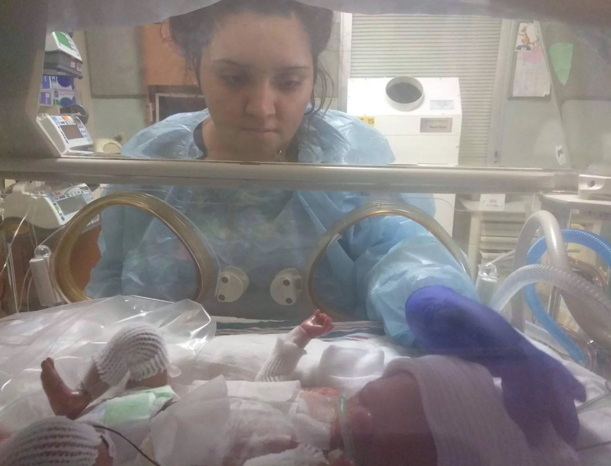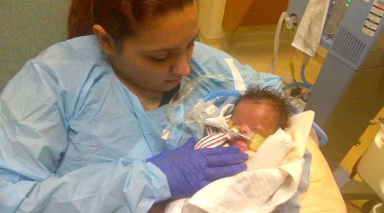 “Lo pude tener en mis brazos dos veces, pero se tiene que utilizar una bata y guantes especiales. No hay contacto piel a piel", dijo Priscilla.