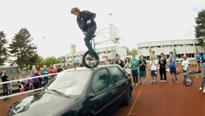 Un joven batió un nuevo récord mundial al realizar el salto más alto logrado en un monociclo. Alcanzó los 132 centímetros. Mirá el video.