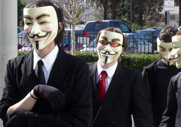 Sus miembros no muestran la cara: se la cubren con la máscara del anarquista revolucionario de la novela gráfica V de Vendetta.