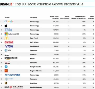 Un punto curioso es que de las cuatro regiones estudiadas, América del Norte, Europa, Reino Unido y Asia, en todas la marca número uno es de una compañía de tecnología siendo Google, Sap, Vodafone y Tencent respectivamente ganadoras del lauro.
