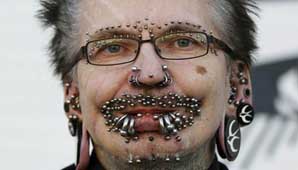 Las perforaciones de Rolf se distribuyen de la siguiente forma: 25 en sus cejas, ocho en su nariz, 94 en los labios y 278 cerca a los genitales, según asegura el diario británico The Sun.